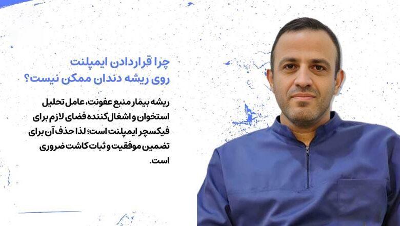 “ایمپلنت دندان، یک ساختار خارجی است که برای موفقیت طولانیمدت، نیازمند تماس مستقیم و سالم با استخوان فک است. ریشه دندان آسیبدیده، آلوده یا عفونی، یک مانع جدی برای فرایند حیاتی جوش خوردگی استخوان (Osseointegration) ایجاد میکند و در صورت حضور، شانس شکست درمان ایمپلنت را بهشدت افزایش میدهد.”
